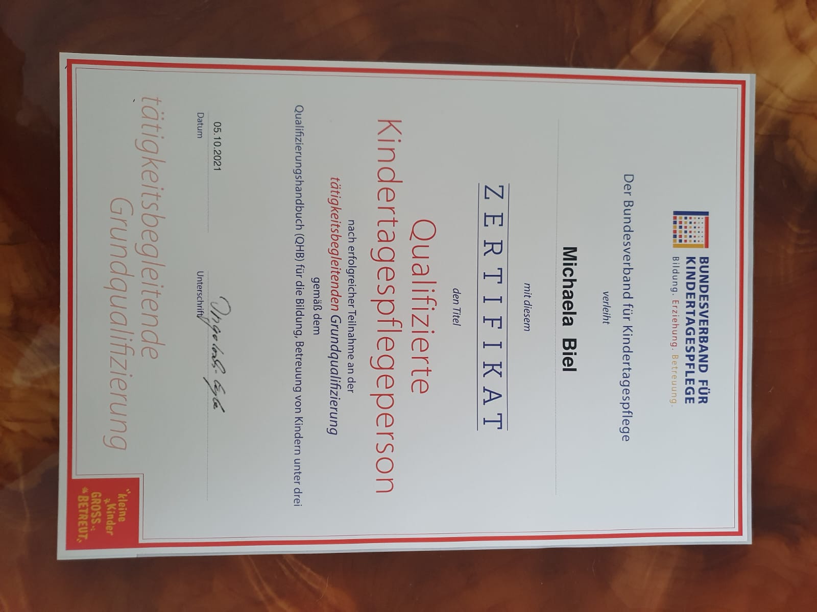 Ich verfüge über eine staatliche Zertifizierung, die höchste Betreuungsstandards garantiert.